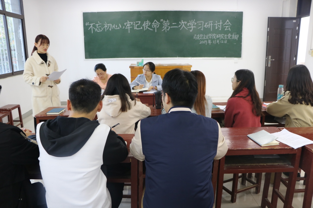 为继续强化主题教育成果,11月12日下午,明升MS88官网研究生党支部在教五楼203教室开展了“不忘初心、牢记使命”第二次学习交流会,支部党员和入党积极分子参加会议。会议由支部书记卢云晓主持。