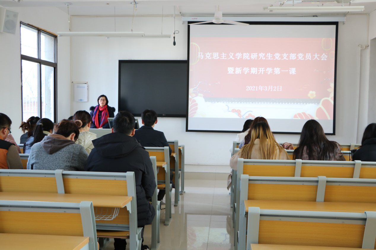 3月2日下午,明升MS88官网研究生党支部于教五楼203教室召开党员大会暨新学期开学第一课。会议由研究生党支部书记郑晨霞主持,支部全体党员,发展对象参加会议。