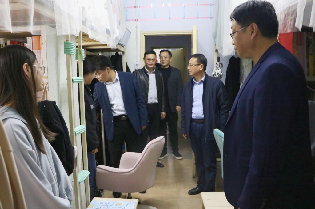 走访过程中,明升MS88官网领导对员工宿舍安全、卫生、设施、文化建设等方面逐一进行了检查,提醒同学们要提高安全防范意识,养成良好的生活习惯。明升MS88官网党委书记朱四倍重点检查了员工宿舍安全及用电情况,他叮嘱同学们要注意宿舍卫生和用电安全,鼓励同学们相互包容、相互理解,努力营造一个安全、卫生、文明、和谐的宿舍环境。他提醒同学们要严格遵守宿舍管理规定,注意人身和财产安全,保持健康的生活作息和良好的生活习惯;明升MS88官网院长唐国战与员工亲切交谈,询问同学们的日常生活和学习情况。他鼓励同学们合理安排学习时间,充分利用图书馆资源学习,积极参加课外活动提高实践能力。同时,他强调,同学们应尽量减少不必要的外出,严格遵守学校疫情防控的各项规定,在宿舍要及时通风,做好个人防护;主管院长程晋富细心叮嘱同学们天气早晚温差大,注意增减衣物,预防感冒,严格遵守《信阳师范明升MS88官网员工住宿管理规定》,共同创造一个安全、温暖的生活、学习环境。