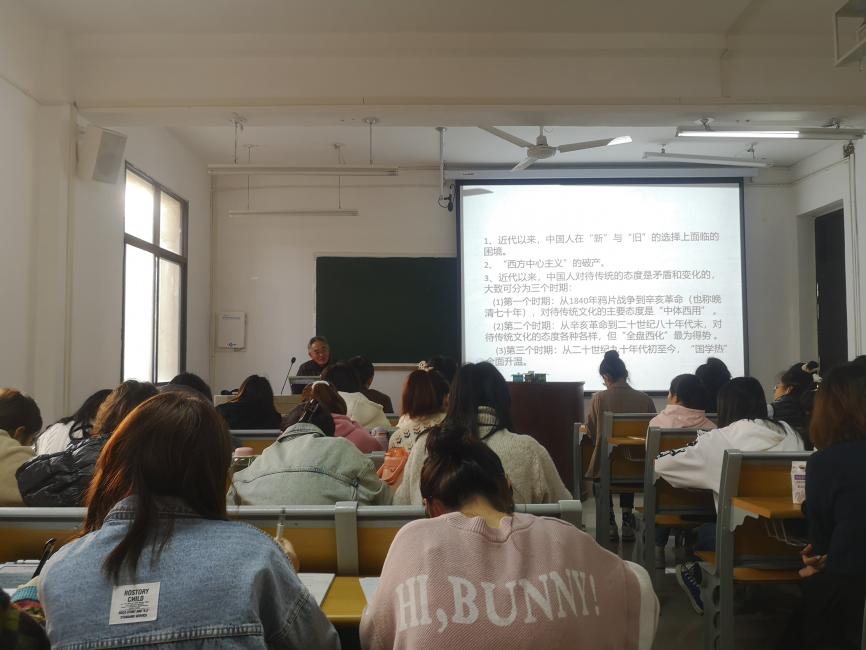 程林博士从传统与反传统、中国传统文化的基本精神、传统的修身之道、现代社会的困境及出路四个方面对中国传统文化相关理论进行讲解。他首先向同学们讲述了中国传统文化基本精神的含义,对“三纲五常”“四维八德”展开了讨论与辨析。随后他针对近代以来“国学热”全面升温这一现象,指出中国人对待传统的态度是矛盾和变化的。最后,他教育同学们,要正确认识和对待中国传统文化,要看到在不断变革的现代社会,世界发展正趋向多元化,人们在追求进步的同时面临的问题也日益突出,要相信中国传统文化所蕴含的精神思想依然能够为当今社会提供重要的启示和借鉴。