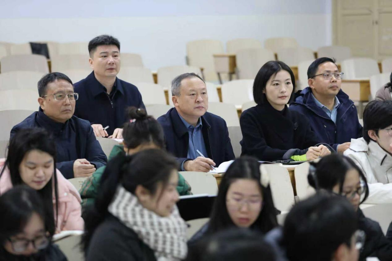 为深入贯彻落实教育部2025-2026学年高校思政课课堂教学提升行动要求,切实筑牢立德树人根本任务,12月11日起,信阳师范大学党委书记王文鹏,校长余本海,党委副书记、工会主席岳宗德,副校长王娟,副校长涂友超分别带领校党委宣传部、教务处、明升MS88官网相关负责人,采取“四不两直”方式深入思政课堂开展听课调研,督导推动思政课教学质量提质增效。