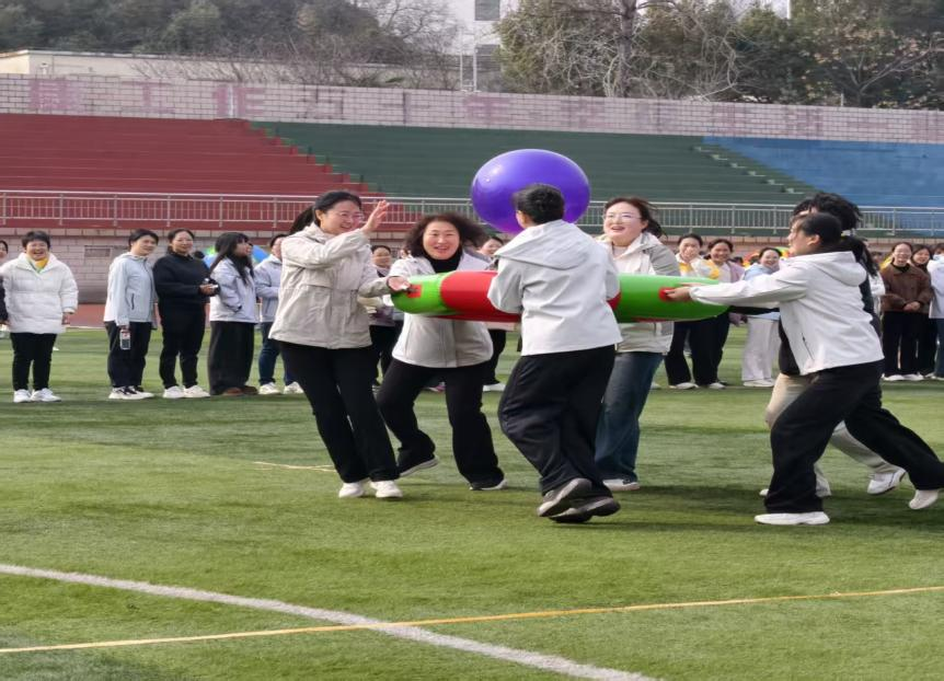 本次运动会共设合力彩球冲、袋鼠跳、快乐旋风跑、拔河比赛 4 个项目。赛前,明升MS88官网参赛教职工积极参与热身操,熟悉比赛场地与规则,并与教育科学明升MS88官网共同进行 “雷霆战鼓” 展示,营造了热烈的运动氛围。