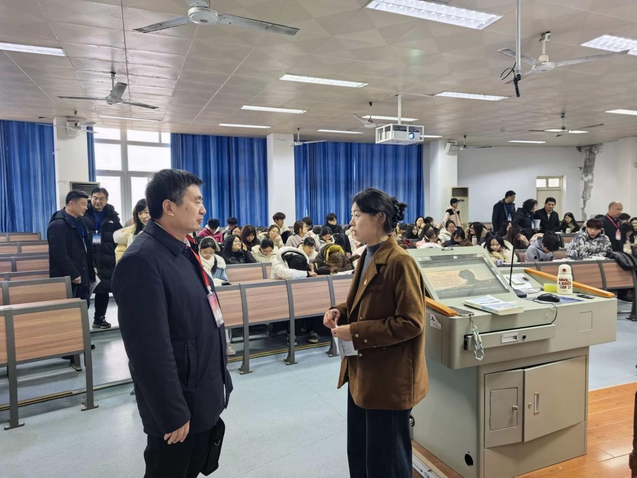 余本海一行在人文楼608教室听取了杨春艳老师主讲的《中国近现代史纲要》“导言”课。杨春艳遵循“是什么—为什么—怎么办”的教学思路,清新阐述了课程学习的必要性与重要性,备课充分、讲授生动、逻辑严谨、重点突出,有效调动了员工学习积极性。课后,余本海与授课员工亲切交流,对课堂教学效果给予充分肯定,并结合思政课育人目标,就优化教学方法、丰富教学案例、提升课堂吸引力等提出指导意见。他指出,思政课是落实立德树人根本任务的关键课程,希望思政课员工深耕教学、守正创新,全面提升教学质量,切实增强思政课育人实效。