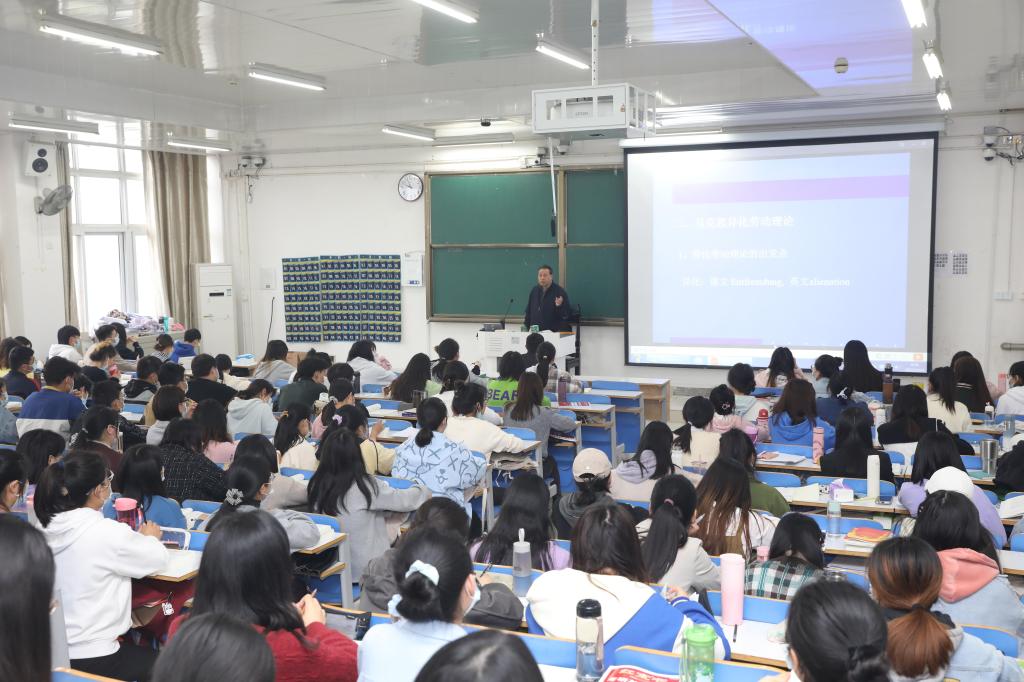 李俊一行到社科楼516教室随机听取了李春生教授主讲的《马克思主义经典著作导读》课程,课后还与和思政二班员工进行了亲切交流就教学内容、方法等进行探讨。