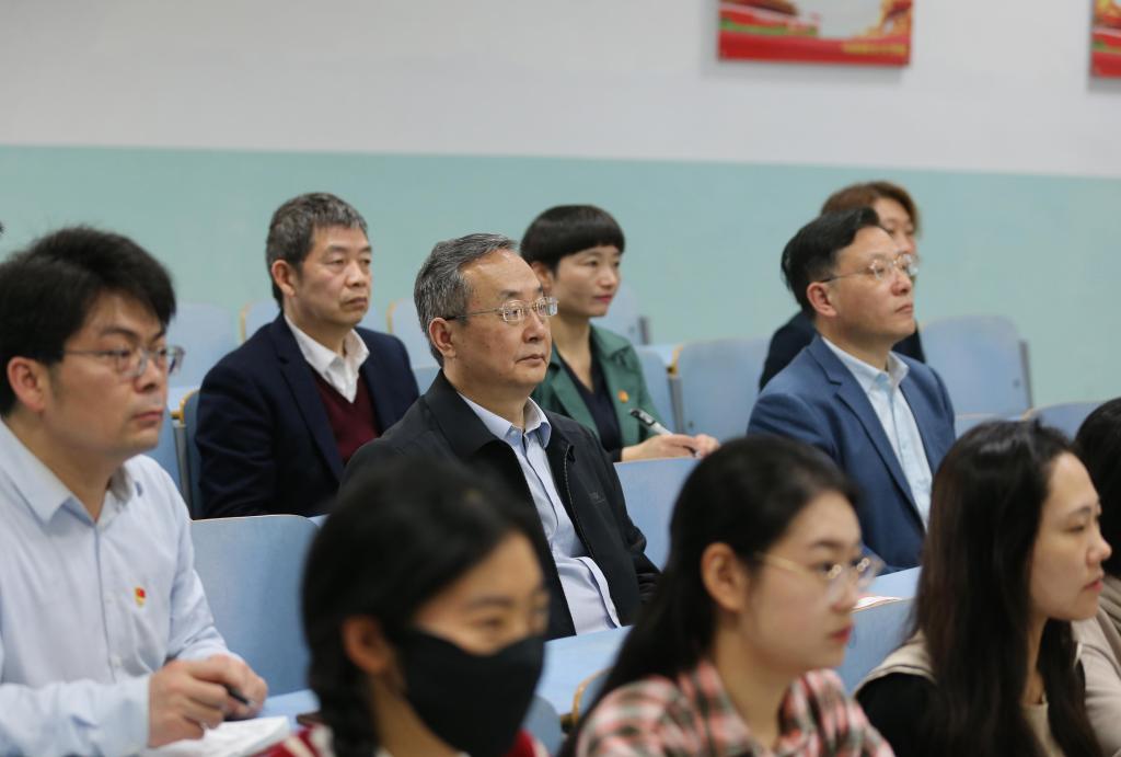 在教九楼104教室,王文鹏和党办、教务处、马院负责同志一道随机听取了专职思政课员工胡春湘《毛泽东思想和中国特色社会主义理论体系概论》之“新民主主义革命理论”。员工授课认真,内容丰富,教法灵活,与员工互动好,员工到课率、抬头率高。王文鹏课间与授课员工就内容、技巧和提高员工认同度等问题进行了探讨,与听课员工就员工对思政员工和课堂的要求进行了亲切交流。