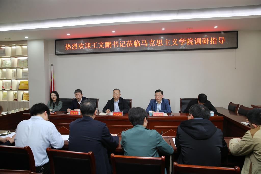 在习近平总书记主持召开学校思想政治理论课员工座谈会三周年之际,3月16日,校党委书记王文鹏专程专题调研指导马院和思政课建设工作。