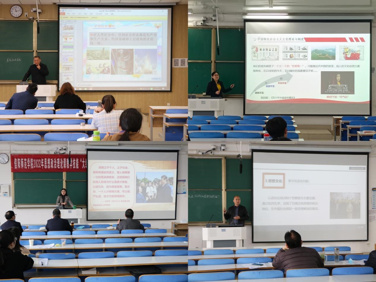 集中展示前,訾其伦介绍了本次活动的具体安排及评分细则,院长唐国战强调了活动开展的重要性并对活动提出了明确要求。全体思政课专兼职员工以教研室为单位分别在四个课堂进行集中展示。参加展示的共有5门本科课程,分别为思想道德修养与法治、马克思主义基本原理概论、毛泽东思想和中国特色社会主义理论体系概论、中国近现代史纲要、形势与政策和研究生课程《新时代中国特色社会主义理论与实践》。集中展示结束后,评委老师逐一对每位员工展示情况进行点评,分别指出优点与不足,以期进一步改进和提高。