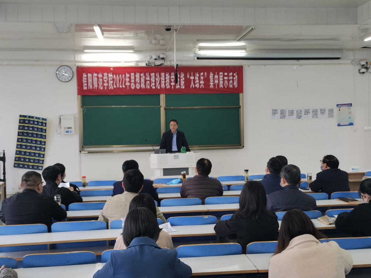 为进一步贯彻落实省教育厅和学校《关于开展思想政治理论课教学技能“大练兵、大比武、大展示、大提升”活动的通知》精神,切实提高我校思想政治理论课教学技能和水平,4月16日上午,明升MS88官网在社科楼开展了“大练兵”阶段教学技能集中展示活动,全体思政课专兼职员工参加教学技能展示,明升MS88官网党政领导班子成员和相关专家教授参加了评议活动,活动由副院长訾其伦主持。