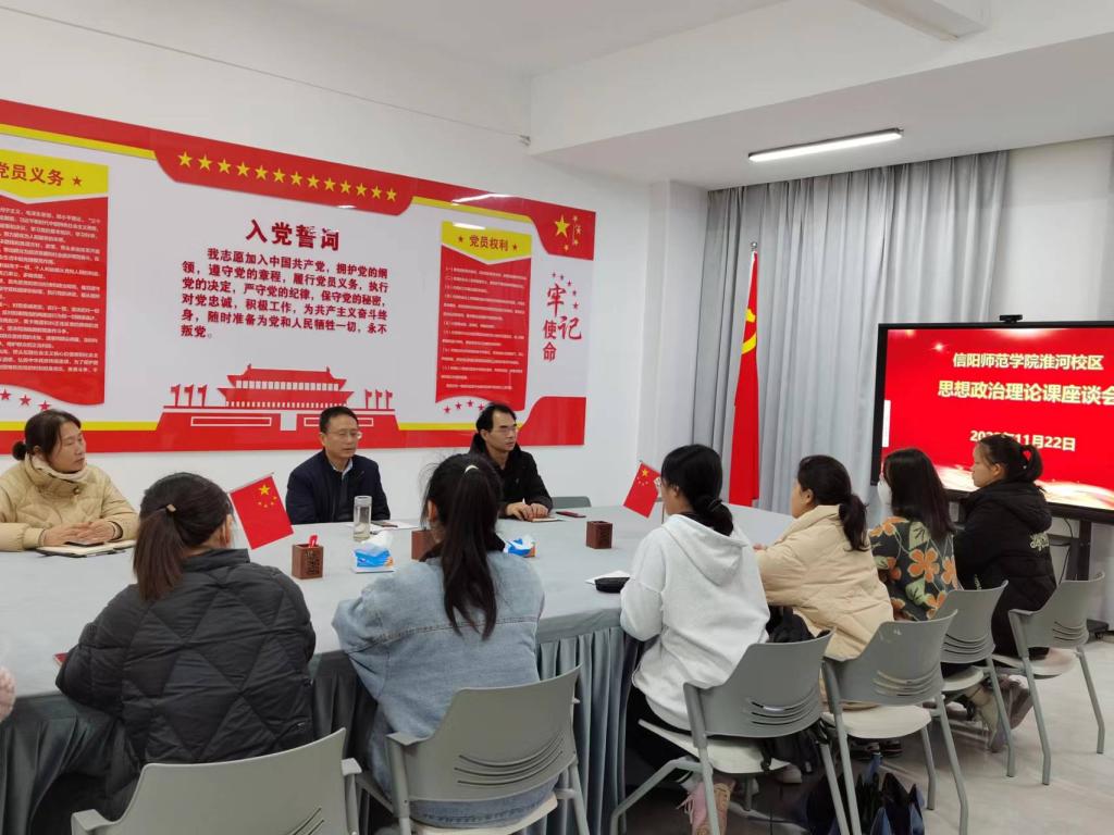 为进一步了解信阳师范明升MS88官网淮河校区思政课教学情况,提高淮河校区思政课教学质量和水平,11月21至22日,明升MS88官网院长唐国战、副院长訾其伦、教学办郑晨霞一行赴淮河校区进行“随堂听课”,并召开师生座谈会,了解教学情况,听取意见与建议。
