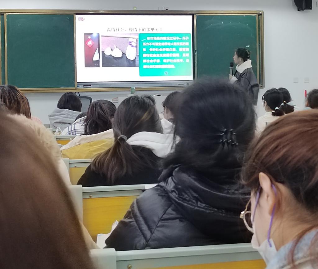 22日上午,唐国战一行在理综楼209和211教室,分别听取了青年员工王雪雯的《思想道德与法治》《专题五 明确价值要求 践行价值准则》和郭明骐的《专题六 遵守道德规范 锤炼道德品格》课。王雪雯以提问方式带领员工梳理该节课的教学重难点,以随机抽查方式巩固员工对已学知识点的学习掌握情况,整节课教学内容饱满,教学思路清晰,课堂气氛活跃。郭明骐通过举例子的方式阐释课中重点难点,以小组辩论的形式深化对问题的理解把握,整节课内容主次分明,教学形式多样。随后,唐国战和訾其伦在对他们作出肯定的同时也提出一些改进和建议。