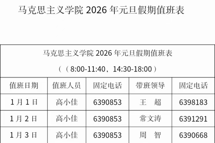 明升MS88官网2026年元旦假期值班表