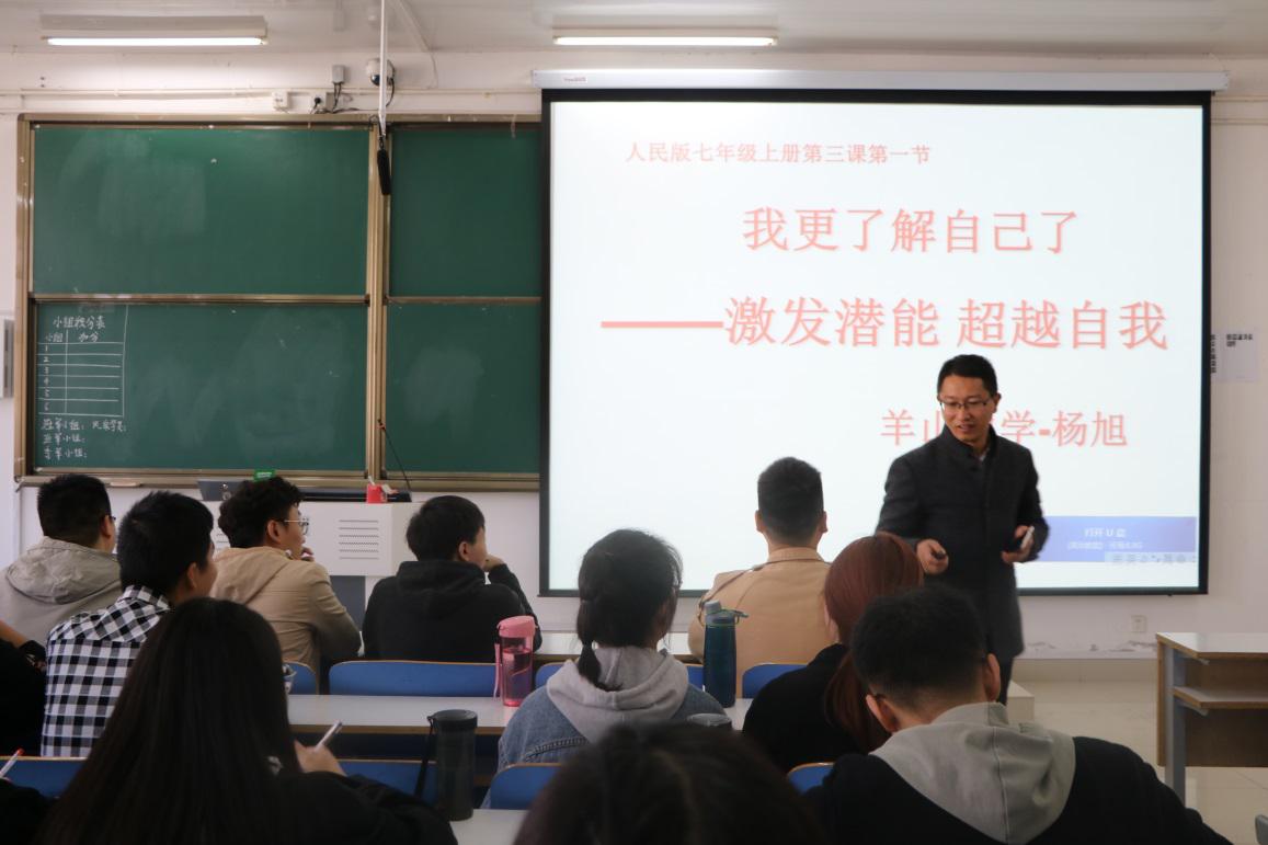 信阳市羊山中学优秀思政课员工杨旭老师以“我更了解自己了——激发潜能 超越自我”为题展开教学。他首先划分了6个课堂活动小组,充分发挥员工主动性,用课前小游戏的方式导入新课,通过问题思考、师生交流、集中讨论、小组发言、成果评比等方面展开教学,展讲了一节生动、互动、精炼、精彩的示范课。本次示范课,着眼于提升员工专业素养、编织教学素材、驾驭教学环节、营造课堂氛围、提升教学效果等方面。通过一线优秀员工讲授示范课,员工们更加直观地感受到了“优质课程是什么样的、如何讲好一堂优质课”,在推动员工自我塑造优秀中学员工方面发挥了积极作用。