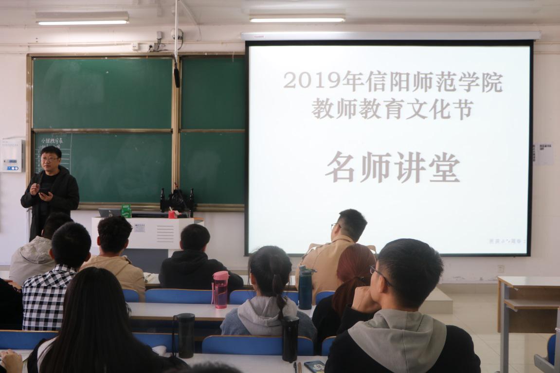 信阳师范明升MS88官网2019年员工教育文化节系列活动之名师讲堂于2019年10月29日上午9点在社会科学楼516教室举行。该活动由学校教务处主办、明升MS88官网承办,邀请信阳市羊山中学高级员工杨旭主讲,明升MS88官网副院长程晋富出席并主持本次活动。
