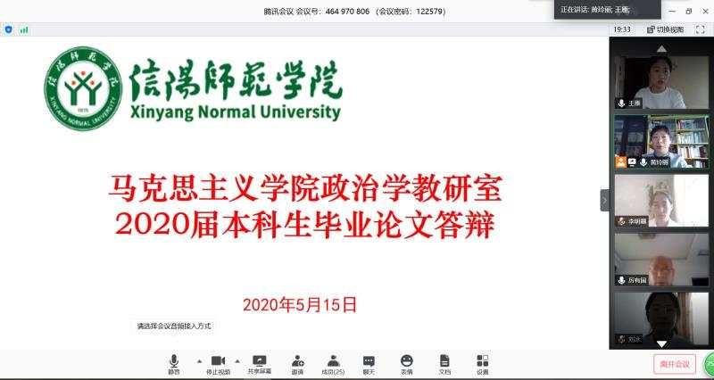毕业论文答辩是本科阶段最后一个学习环节,是检验员工专业能力和综合素质的有效途径。本次线上答辩是在疫情的特殊环境下进行的,展现了疫情面前马院师生严谨的学术态度和良好的精神面貌,为员工的毕业就业创业打下了坚实的基础。