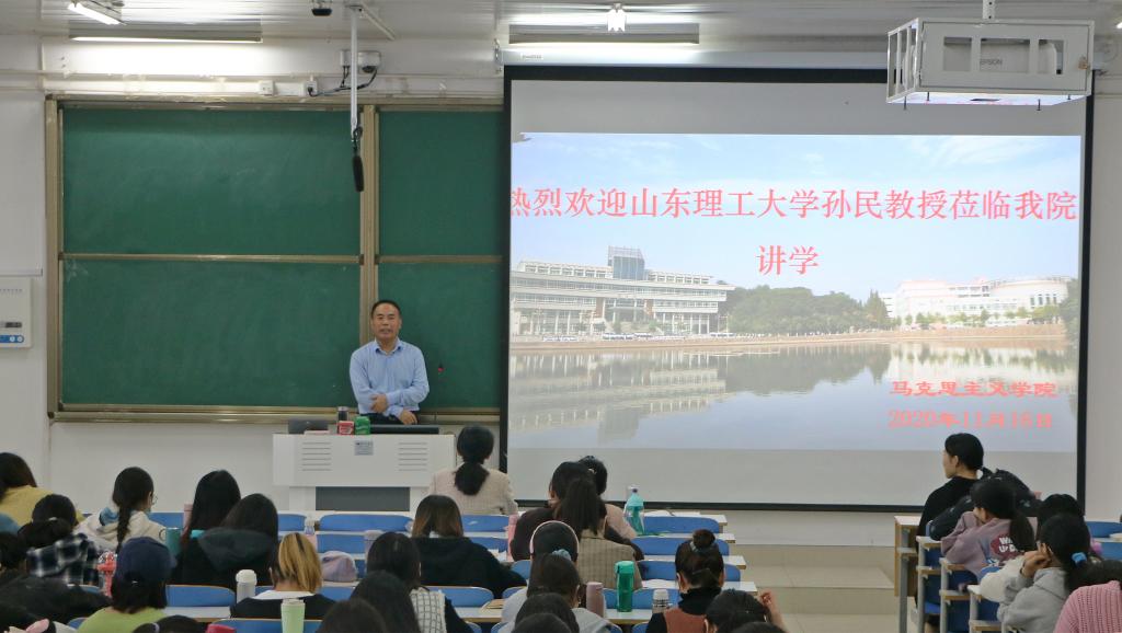 11月16日上午,应明升MS88官网和当代马克思主义研究所邀请,山东理工大学教授、博士生导师孙民在社科楼514教室作了题为“重思马克思的共产主义思想及其当代意义”的学术报告。信阳师范明升MS88官网当代马克思主义研究所副所长徐永新以及百余名师生共同聆听了此次报告。报告由徐永新主持。