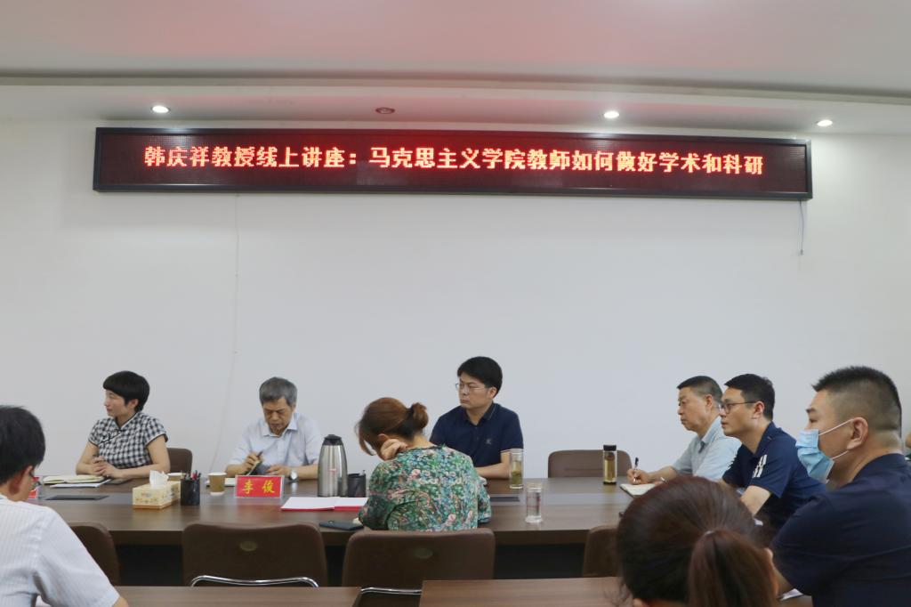 6月6日,应明升MS88官网邀请,中共中央党校(国家行政明升MS88官网)韩庆祥教授在腾讯会议网络平台为明升MS88官网师生作了题为“明升MS88官网员工如何做好学术和科研”的专题讲座。信阳师范明升MS88官网校长李俊教授亲临讲座现场并致辞,明升MS88官网全体员工、研究生和部分本科生以集中或线上分散形式聆听了此次讲座。讲座由明升MS88官网副院长李蕊教授主持。