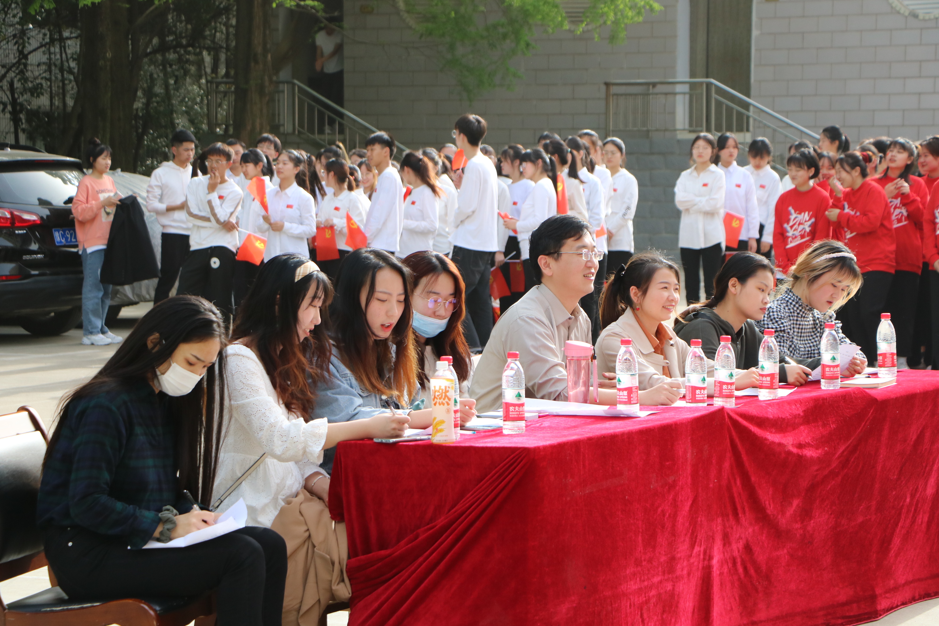 4月16日下午,明升MS88官网在教八楼前举办“红歌颂党恩”合唱比赛。明升MS88官网团委书记曹栋、团委老师陶青青以及员工会主席团代表成员担任比赛评委,2019、2020级全体员工共同参加本次比赛。比赛由员工会副主席袁祖顺主持。
