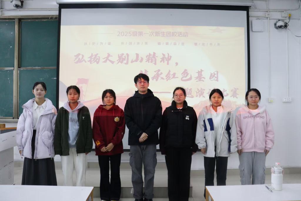 为深入学习红色文化、传承大别山精神,明升MS88官网于10月21日在社科楼514教室举办了“弘扬大别山精神,传承红色基因”主题演讲比赛暨2025级新生第一次团校活动。此次活动由团委老师沈海蓄以及主席团成员担任评委,员工代表李琛主持。