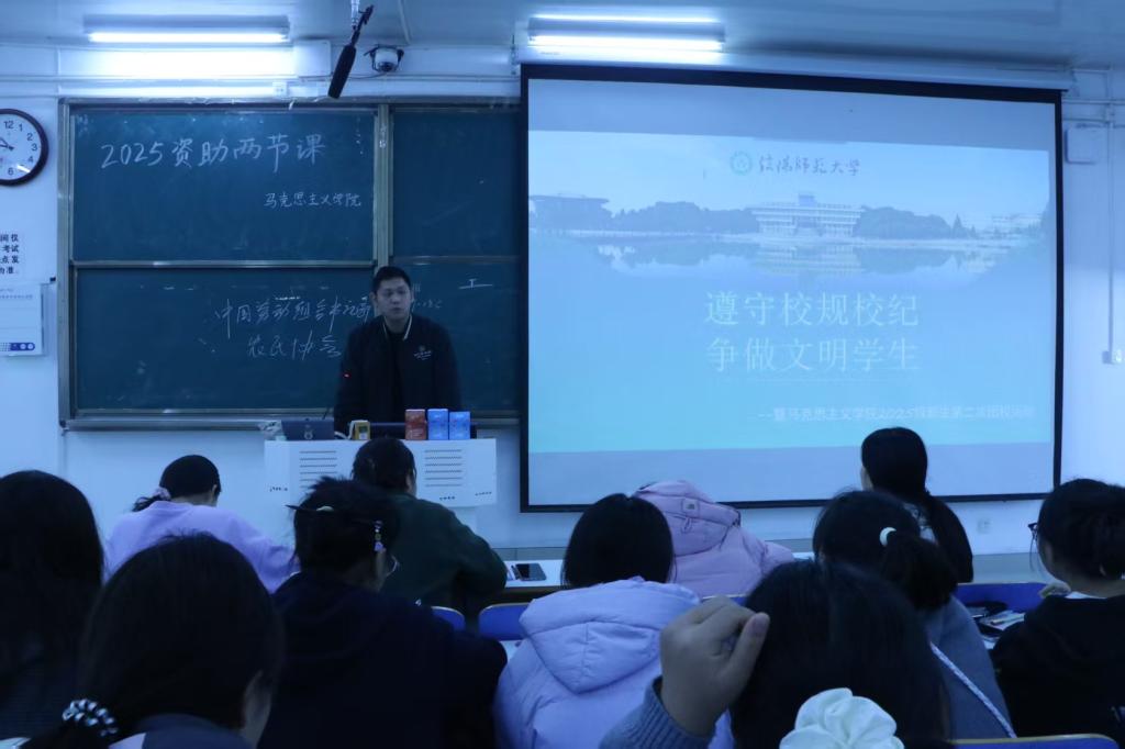 此次团校活动以“引导新生深刻理解校规校纪内涵、自觉践行文明行为规范”为核心目标,通过多维度讲解与互动环节,助力新生明晰成长方向。活动伊始,徐冰雪围绕“重温学校精神、锚定成长坐标”展开分享,不仅深入解读了校训与校风的深刻内涵,更结合学校办学理念,重点阐释了“坚持社会主义办学方向、以立德树人为根本”的核心思想。她强调,新生应坚定理想信念,主动学习马克思主义中国化最新成果,将个人成长规划与时代发展需求紧密结合;同时详细介绍了学校“依法建校、科学管理”的基本原则,鼓励同学们在日常学习生活中践行“自我管理、自我服务、自我教育、自我监督”的成长路径,逐步提升自主发展能力。