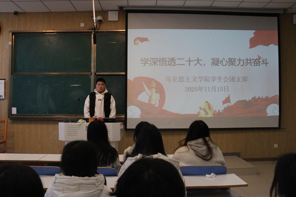 为深入学习贯彻党的二十大精神,引导广大青年学子坚定理想信念、勇担时代使命,明升MS88官网员工会于11月18日在社科楼514成功举办“学深悟透二十大,凝心聚力共奋斗”主题团课。本次活动由明升MS88官网员工会主席团成员唐子浩主持,全体团支部成员积极参与。