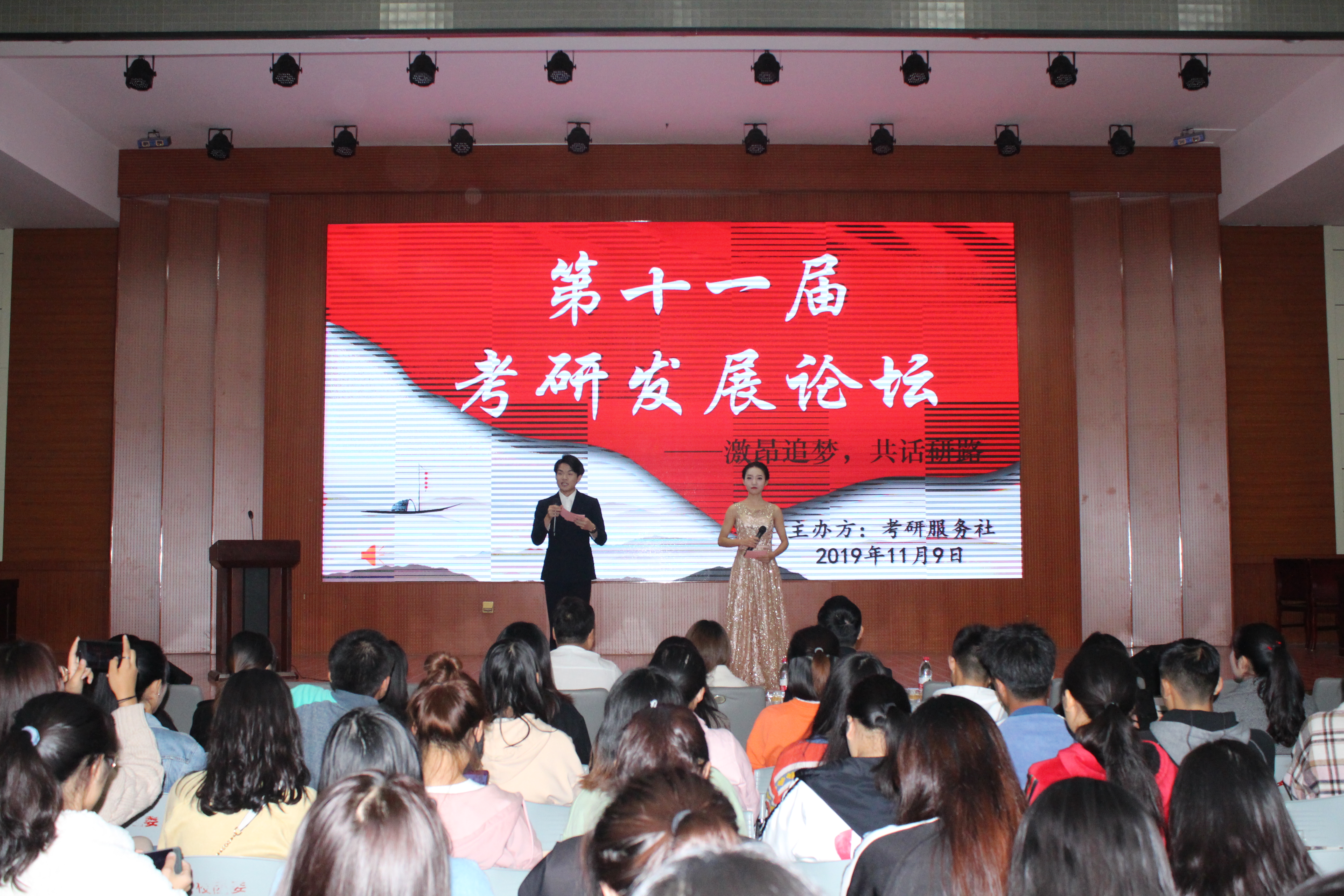 激情追梦,共话研路。11月9日晚,明升MS88官网考研服务社在逸夫楼报告厅举办第十一届考研发展论坛。明升MS88官网团委书记曹栋、生命科学明升MS88官网资深考研指导老师张伟、明升MS88官网青年员工罗璇以及数百名员工共同参加了本次论坛。论坛由传媒明升MS88官网崔雨洁、傅志伟主持。