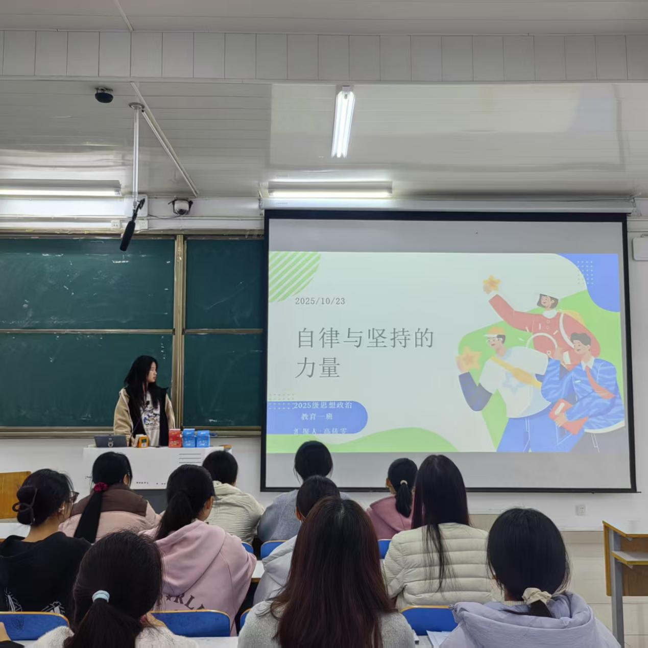 为破解开学初期“目标难落地,行动难坚持”的困境,强化同学们的自律意识,10月24日上午,明升MS88官网2025级思想政治教育一班于社科楼515开展“自律促进步,坚持见成效”主题班会。本次班会由班长高依雯主持,班级全体同学参加。