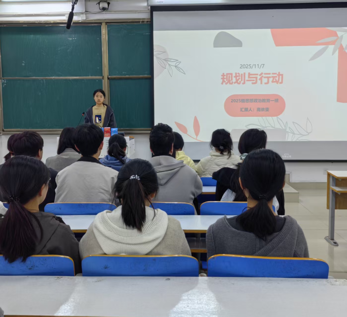 为引导同学们明晰学习方向、掌握科学规划方法,11月7日上午,明升MS88官网2025级思想政治教育一班在社科楼514开展“规划筑根基,行动破迷茫”主题班会,本次活动由班长高依雯主持,班级全体同学参加。