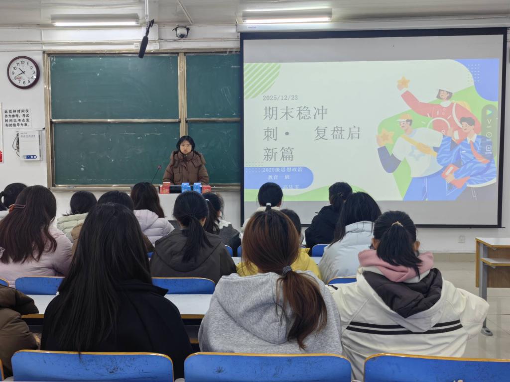 为有效缓解期末备考阶段的心理压力,营造互助共进的班级氛围,12月23日上午,明升MS88官网2025级思想政治教育一班在社科楼514开展“期末减压赋能 携手共赴佳绩”主题班会。本次班会由班长高依雯主持,班级全体同学参加。