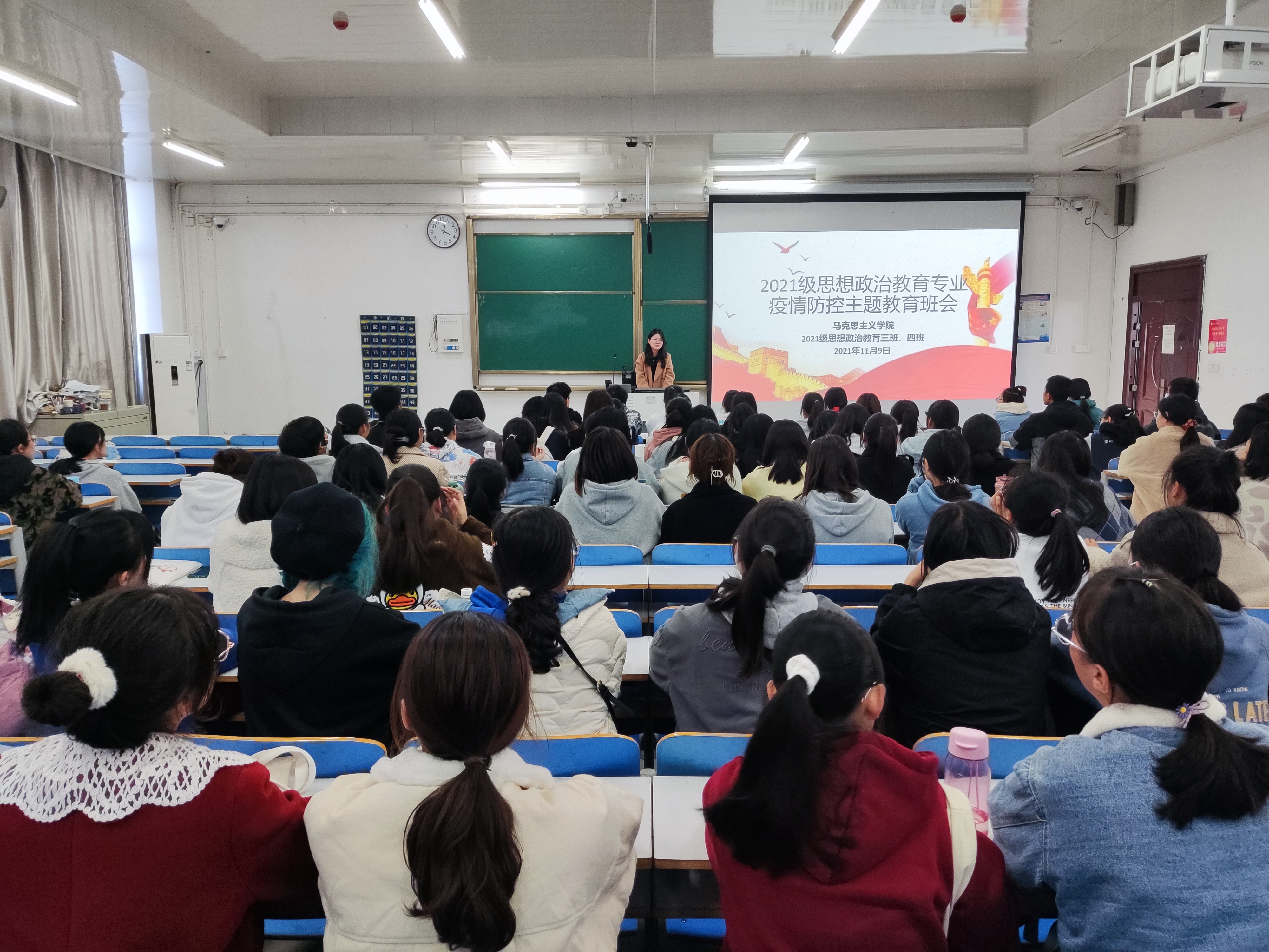 根据省防控指挥部最新下发的疫情防控工作的文件精神和明升MS88官网党委副书记黄煌对疫情防控工作的安排部署,11月9日下午,明升MS88官网2021级思想政治教育三班、四班在社科楼514教室组织召开疫情防控主题教育班会。班主任高小佳以及明升MS88官网2021级思想政治教育三班、四班全体成员共同参加,班会由班主任高小佳主持。