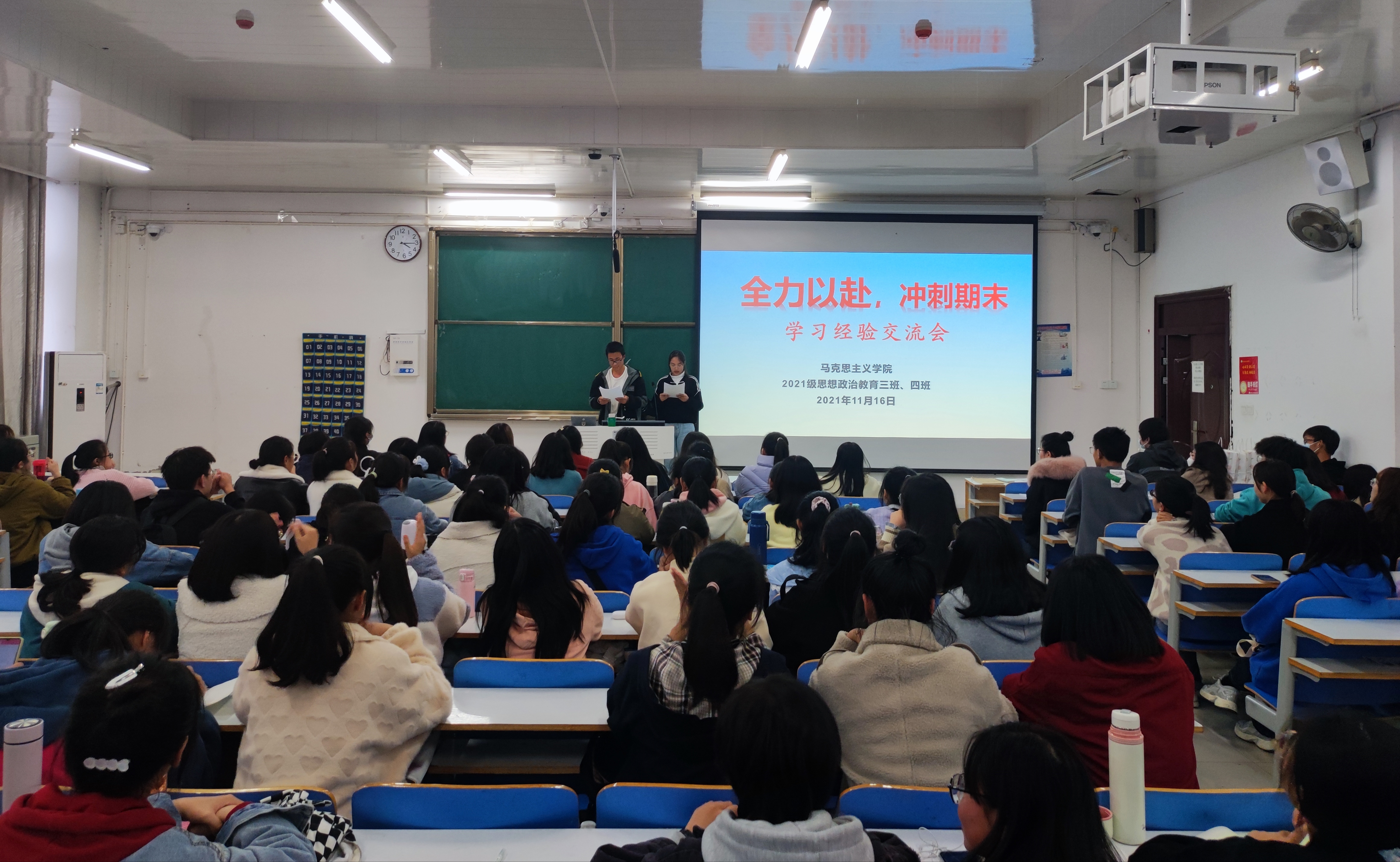 为进一步激发同学们的学习积极性,改进学习方法,帮助同学们更好的明确学习目标,11月16日下午,明升MS88官网2021级思想政治教育三班、四班在社科楼515教室开展学习经验交流会。班主任高小佳、2020级优秀员工代表以及2021级思想政治教育三班、四班全体同学参加了本次班会。班会由学习委员于坤鹏、史恪萍主持。