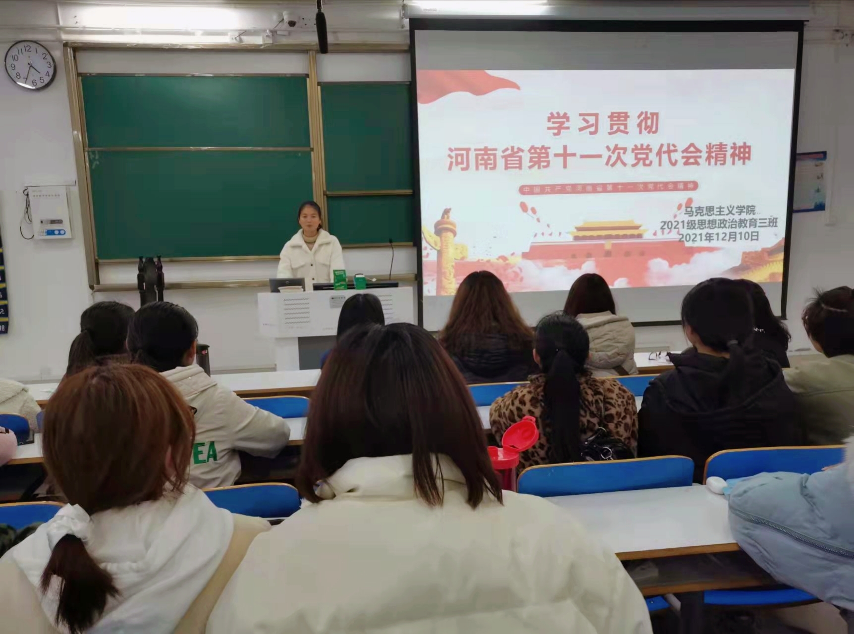 12月10日下午,明升MS88官网2021级思想政治教育三班在社科楼514教室举办“学习河南省第十一次党代会精神,争做新时代优秀团员”主题团课。2021级思想政治教育三班全体团员参加此次团课。团课由劳动委员易从漫主持。