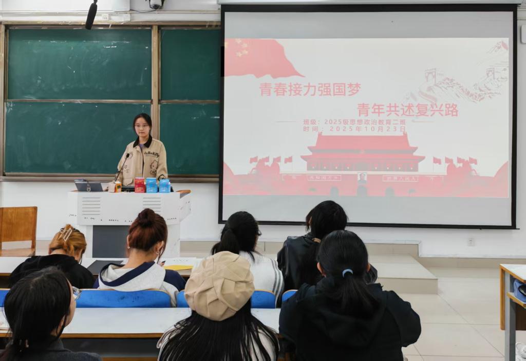 为引导同学们自觉将个人理想融入国家发展,10月23日上午,明升MS88官网思想政治教育二班于社科楼514教室召开“青春接力强国梦,青年共述复兴路”主题团课。本次团课由团支书崔锐琳主持。