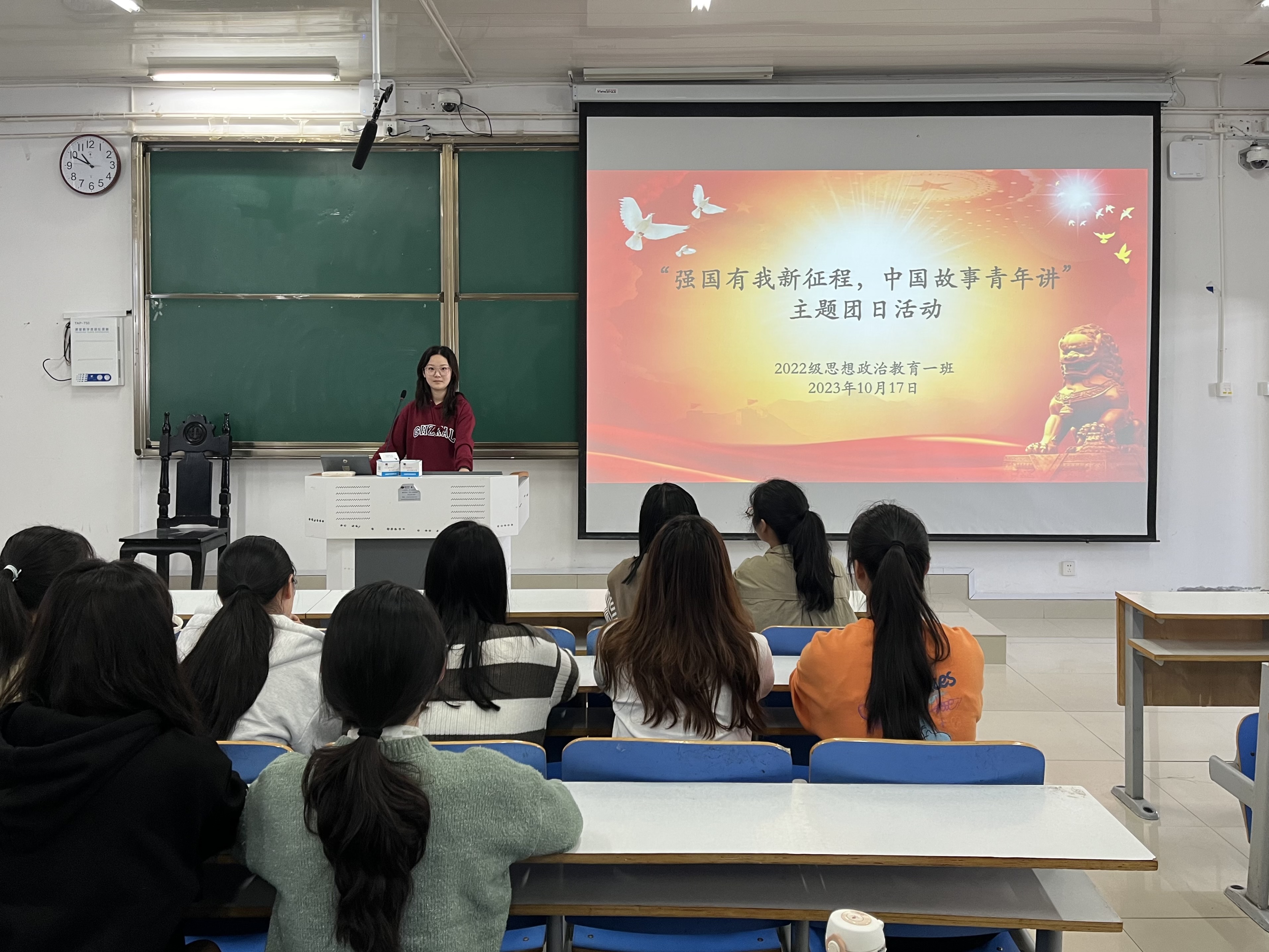为深入学习中国青年爱国精神,10月17日上午,明升MS88官网2022级思想政治教育一班在社科楼514教室召开“强国有我新征程,中国故事青年讲”主题团课。明升MS88官网2022级思想政治教育一班全体同学共同参与本次团课,团课由团支书李佳茹主持。