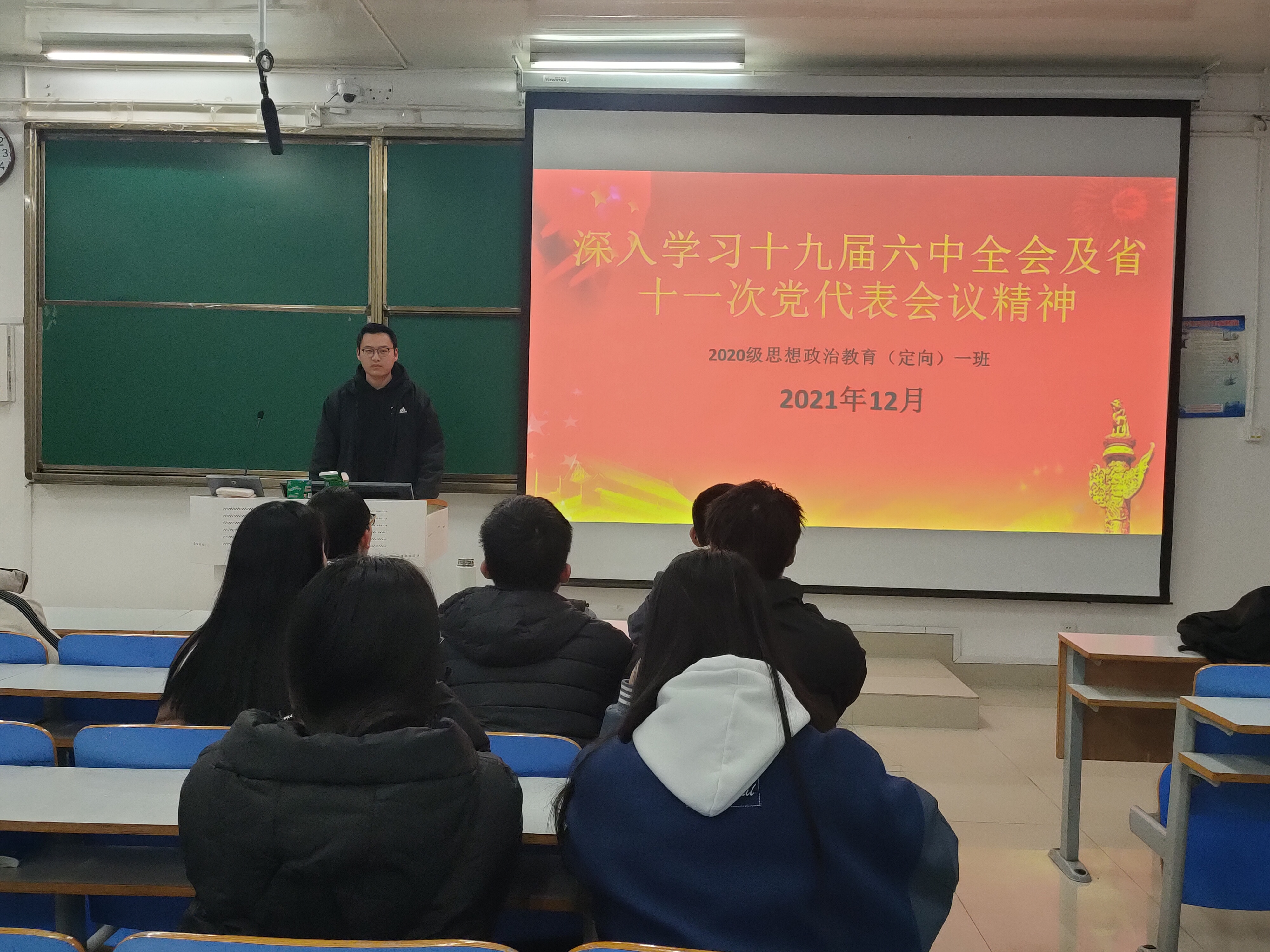 12月5日下午,明升MS88官网2020级思想政治教育定向一班团支部在社科楼514教室举办了深入学习党的十九届六中全会及省第十一次党代会精神主题团课。明升MS88官网2020级思想政治教育定向一班团支部全体成员参与了本次团课。