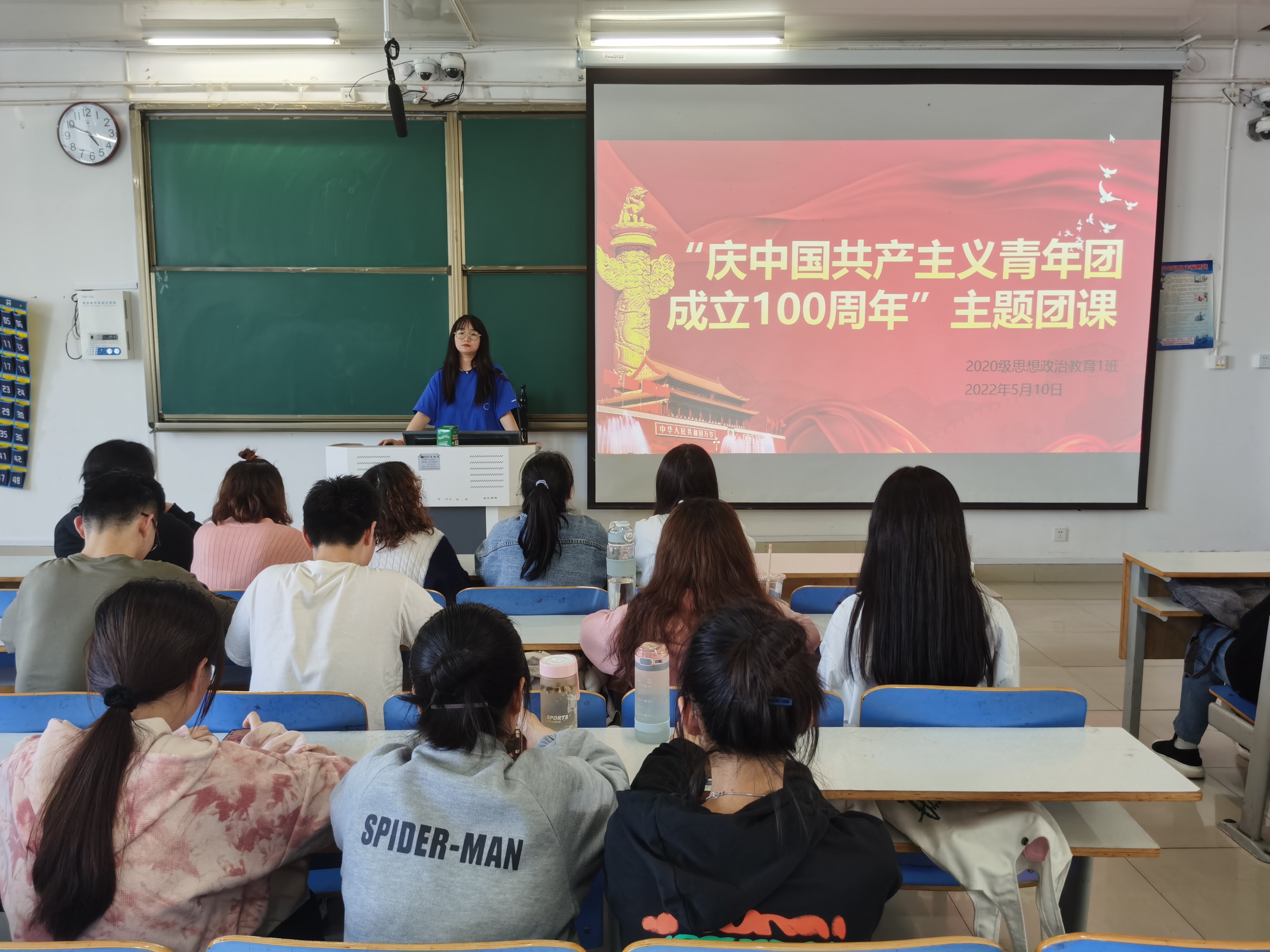 5月10日上午,明升MS88官网2020级思想政治教育一班团支部全体团员在社科楼514教室一同观看了庆祝中国共产主义青年团成立一百周年大会。