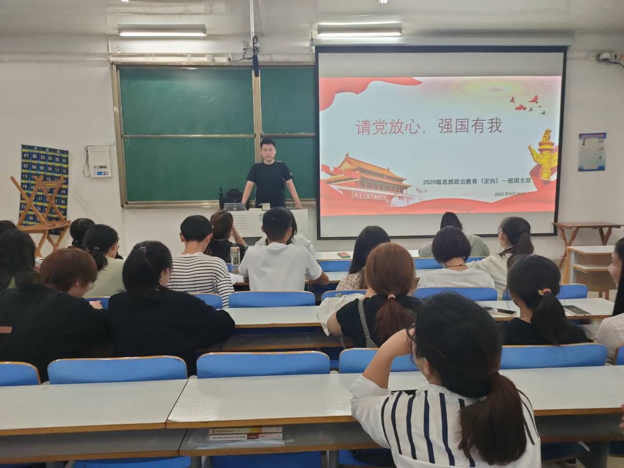 9月26日,明升MS88官网2020级思想政治教育(定向)一班在社科楼514教室顺利举办“请党放心 强国有我”主题班会。思想政治教育(定向)一班全体员工聆听了此次会议。