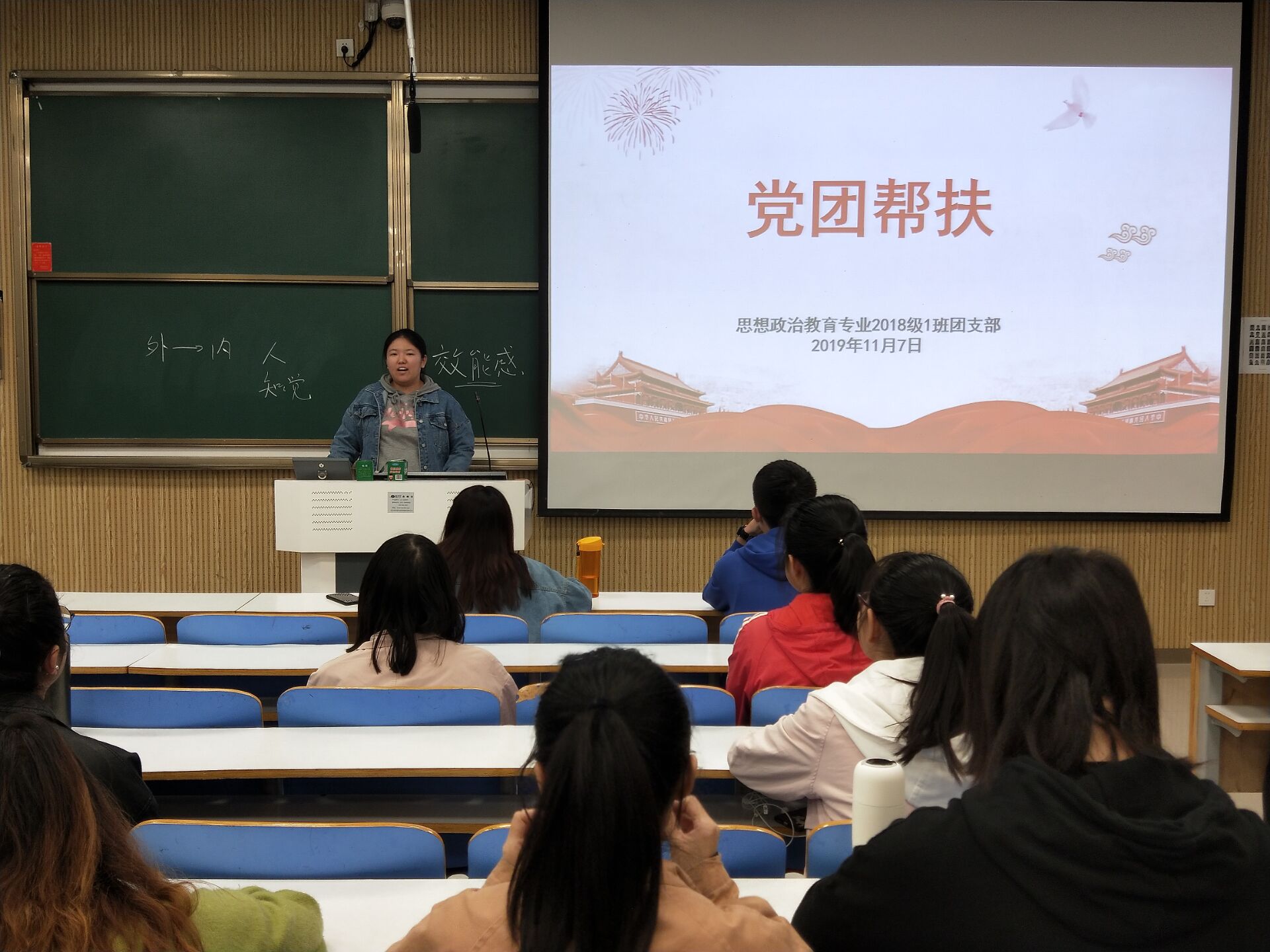 为充分发挥党员干部的先锋模范作用,帮助同学们解决学习和生活问题,11月7日下午,明升MS88官网2018级思想政治教育一班在社科楼515教室顺利开展“党团帮扶”班会。2018级思政一班全体同学共同参加此次会议。会议由团支书靳雨露主持。