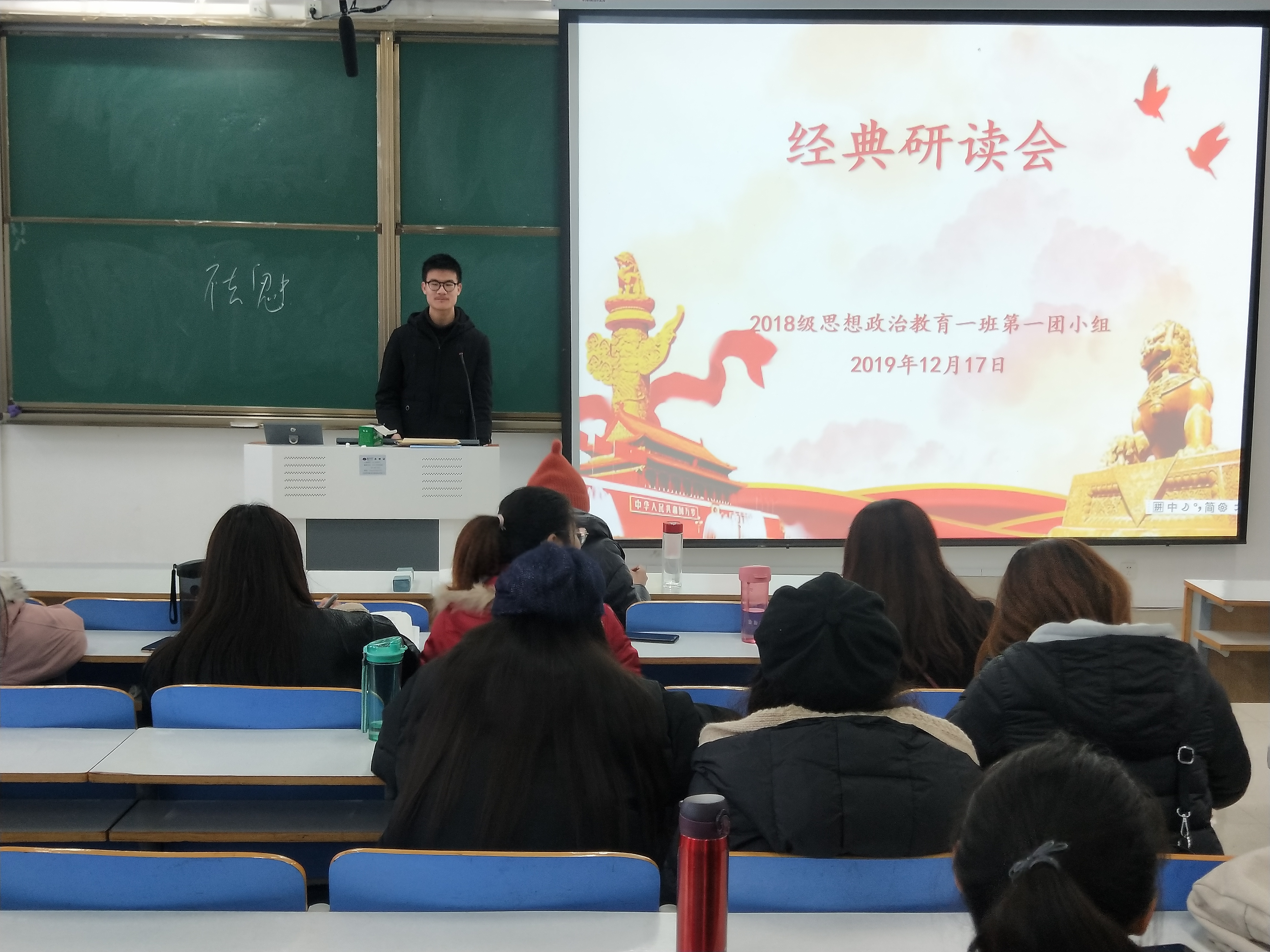 12月17日上午,明升MS88官网2018级思想政治一班第一团小组在社科楼514教室顺利开展“经典研读”主题团会。第一团小组全体成员共同参加此次团会。团会由团小组成员靳梦哲主持。