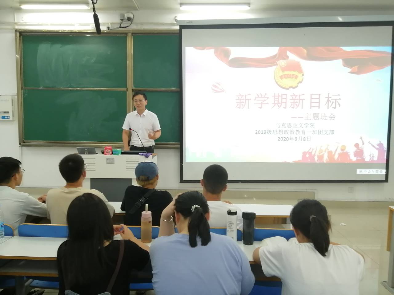 9月8日下午,明升MS88官网2019级思想政治教育一班在社科楼514教室召开“新学期新目标”主题班会。明升MS88官网团委书记曹栋以及2019级思想政治教育一班全体成员参加本次班会。会议由曹栋主持。