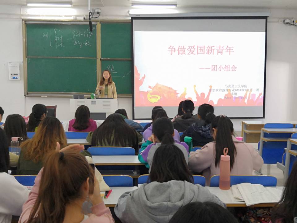 10月15日上午,明升MS88官网2018级思想政治教育一班在社科楼514教室顺利开展“争做爱国新青年”主题团会。第一团小组全体成员共同参加此次会议。会议由团小组成员张玉主持。