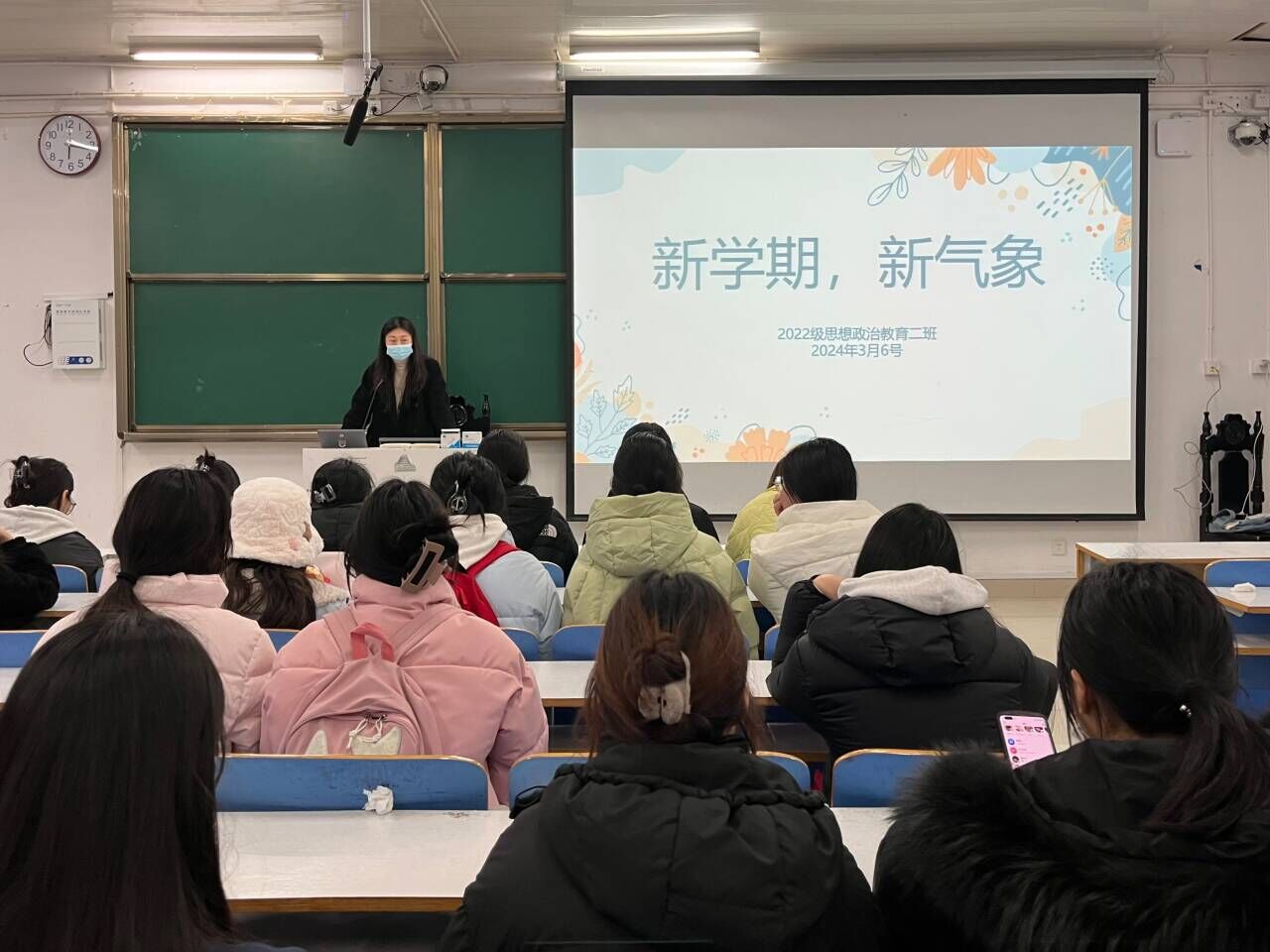为扎实做好新学期员工教育工作,引导同学们尽快融入新学期生活,3月6日下午,明升MS88官网2022级思想政治教育二班在社科楼514教室召开“新学期,新气象”主题班会。明升MS88官网2022级思想政治教育二班全体成员共同参与此次班会。会议由班主任杨春艳主持。