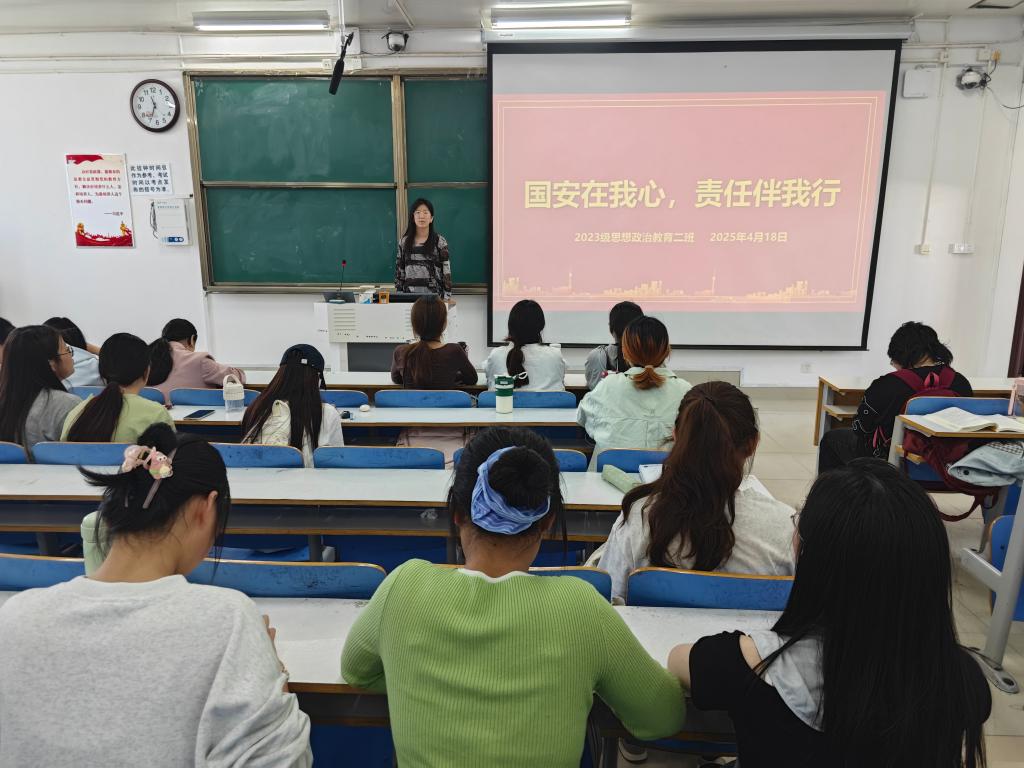 为进一步宣传全民国家安全教育日,普及国家安全教育,4月18日上午,明升MS88官网2023级思想政治教育二班在社科楼515教室开展“国安在我心,责任伴我行”主题团课,本次团课由团支书王慜初主持,全体二班同学参加。