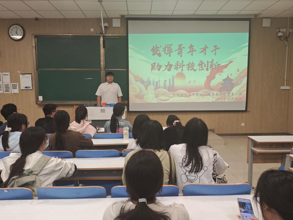 为激发青年员工创新精神,鼓励大家在科技强国建设中贡献青春力量,10月16日下午,明升MS88官网2024级思想政治教育二班在社科楼515教室举办了“发挥青年才干 助力科技创新”主题班会。本次班会由团支书王志颖主持,二班全体同学积极参与。