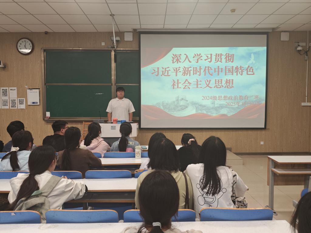 为深入学习贯彻习近平新时代中国特色社会主义思想,切实激发青年的使命感与责任感,10月9日下午,明升MS88官网2024级思想政治教育二班于社科楼514教室举办了“深入学习贯彻习近平新时代中国特色社会主义思想”主题团课活动。此次团课由团支书王志颖主持,二班全体同学共同参与。