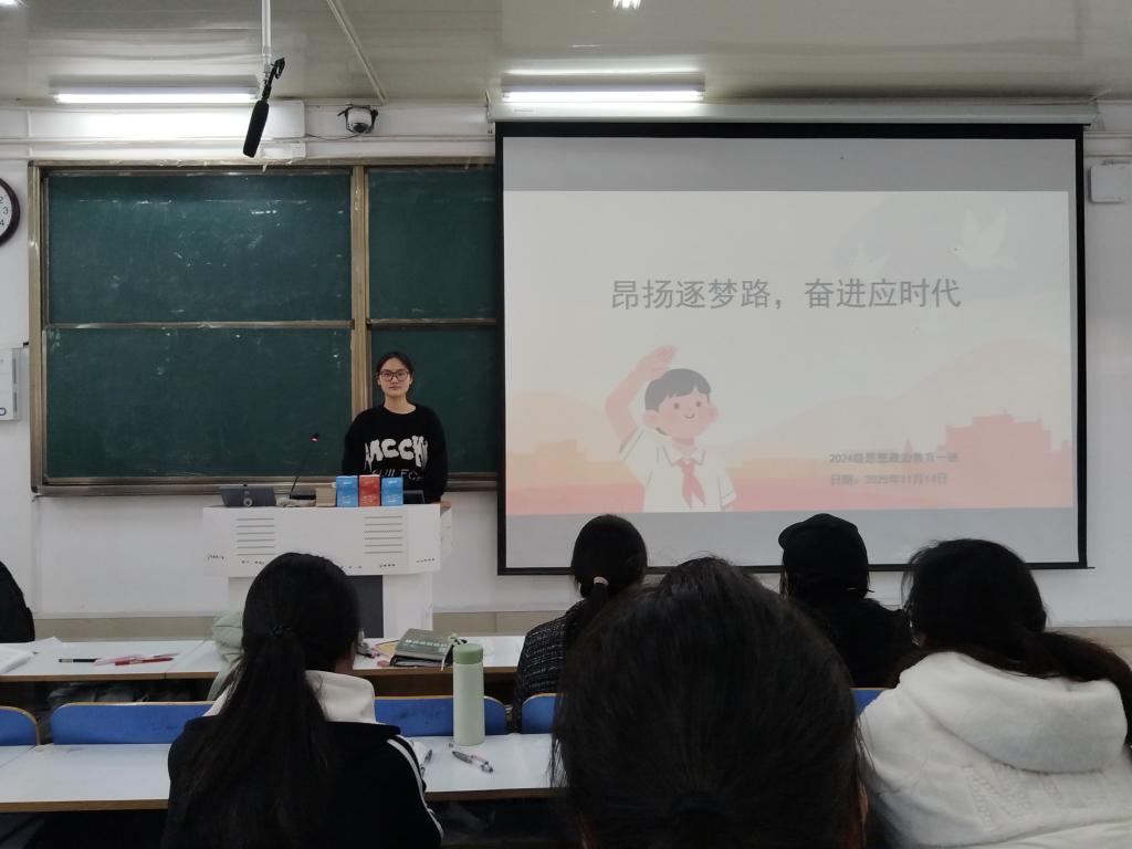 为深化青年学子的使命认知,凝聚奋进青春力量,11月14日上午,明升MS88官网2024级思想政治教育一班于社科楼514教室开展“昂扬逐梦路,奋进应时代”主题团课。本次团课由团支书李冉主持,一班全体同学参加。