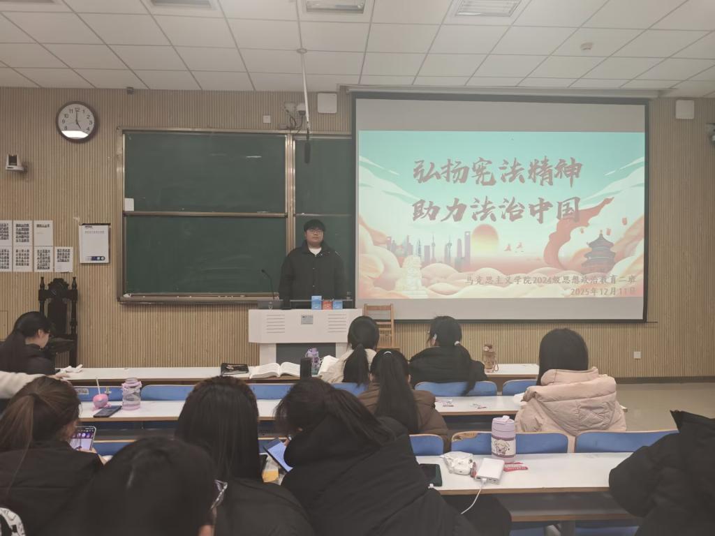 为增强青年员工的法治意识,树立宪法权威,推动新时代青年助力法治中国建设,12月11日下午,明升MS88官网2024级思想政治教育二班于社科楼515教室举办了“弘扬宪法精神,建设法治中国”主题团课活动。本次团课由团支书王志颖主持,二班全体同学共同参与。