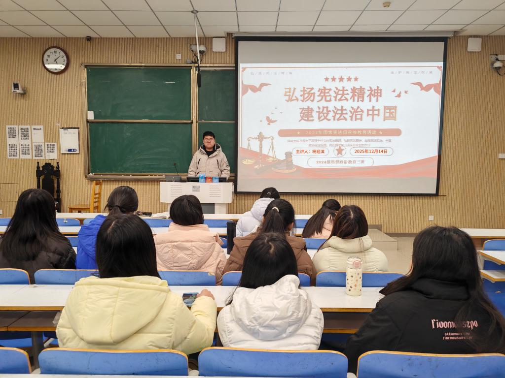 为深入学习贯彻习近平法治思想,引导青年学子增强宪法意识、树立法治观念,明升MS88官网2024级思想政治教育三班于12月14日在社科楼515教室组织开展“弘扬宪法精神,建设法治中国”主题团课。班级成员齐聚一堂,共同学习宪法知识、感悟法治力量。