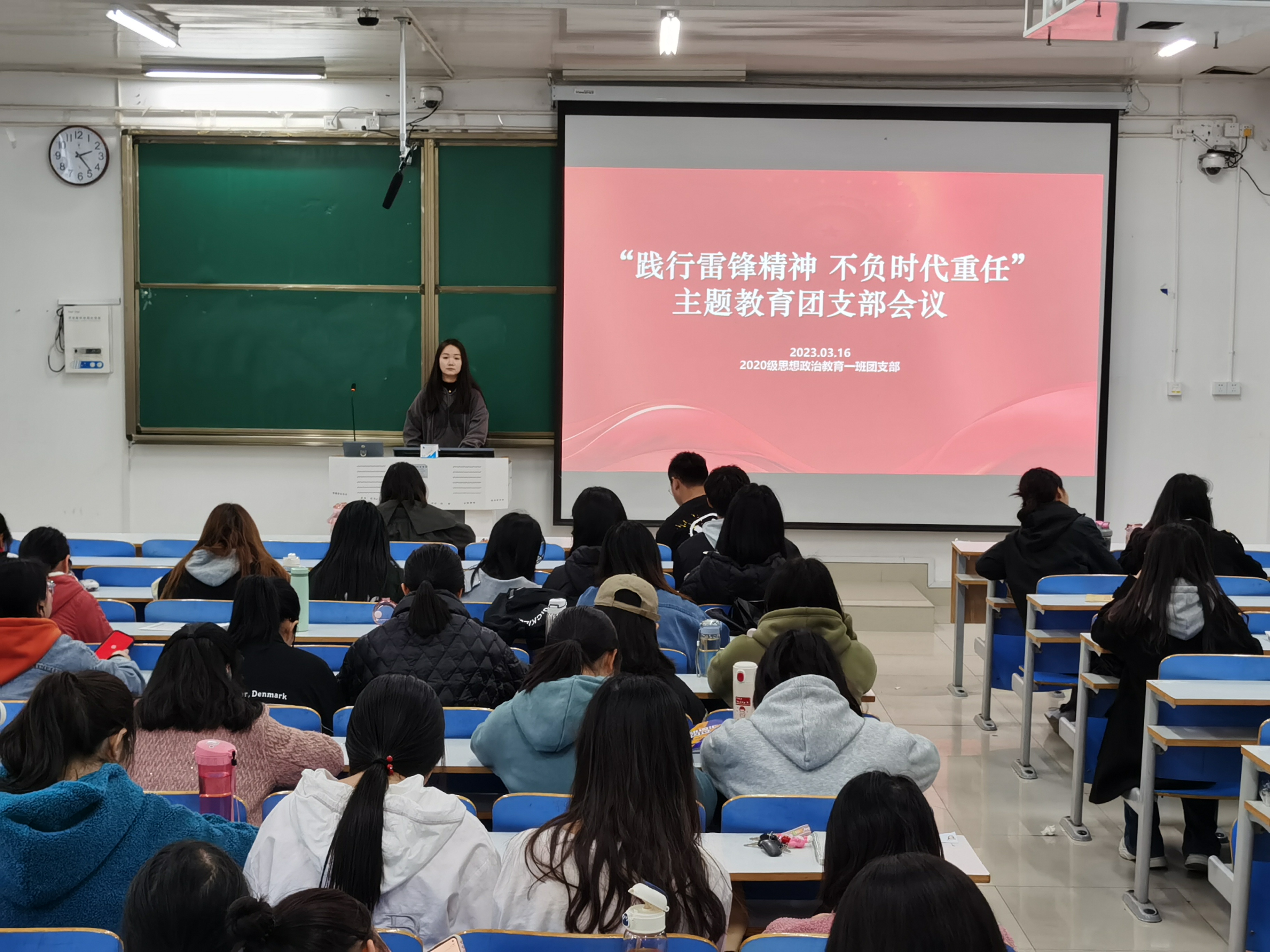 为贯彻落实习近平总书记关于学习雷锋精神和开展志愿服务工作的重要指示精神,加强团支部同学的思想品德教育,3月16日下午,明升MS88官网2020思想政治教育一班在社科楼514教室开展“践行雷锋精神,不负时代重任“主题团课。2020级思想政治教育一班全体团员参加此次团课。团课由团支部书记卢茜雨主持。