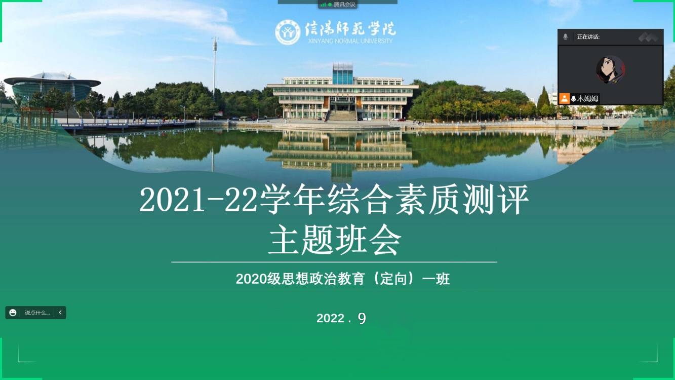 9月28日,明升MS88官网2020级思想政治教育定向一班采用腾讯会议的形式顺利举办学年综合素质测评班会。定向一班全体员工参与了此次班会。
