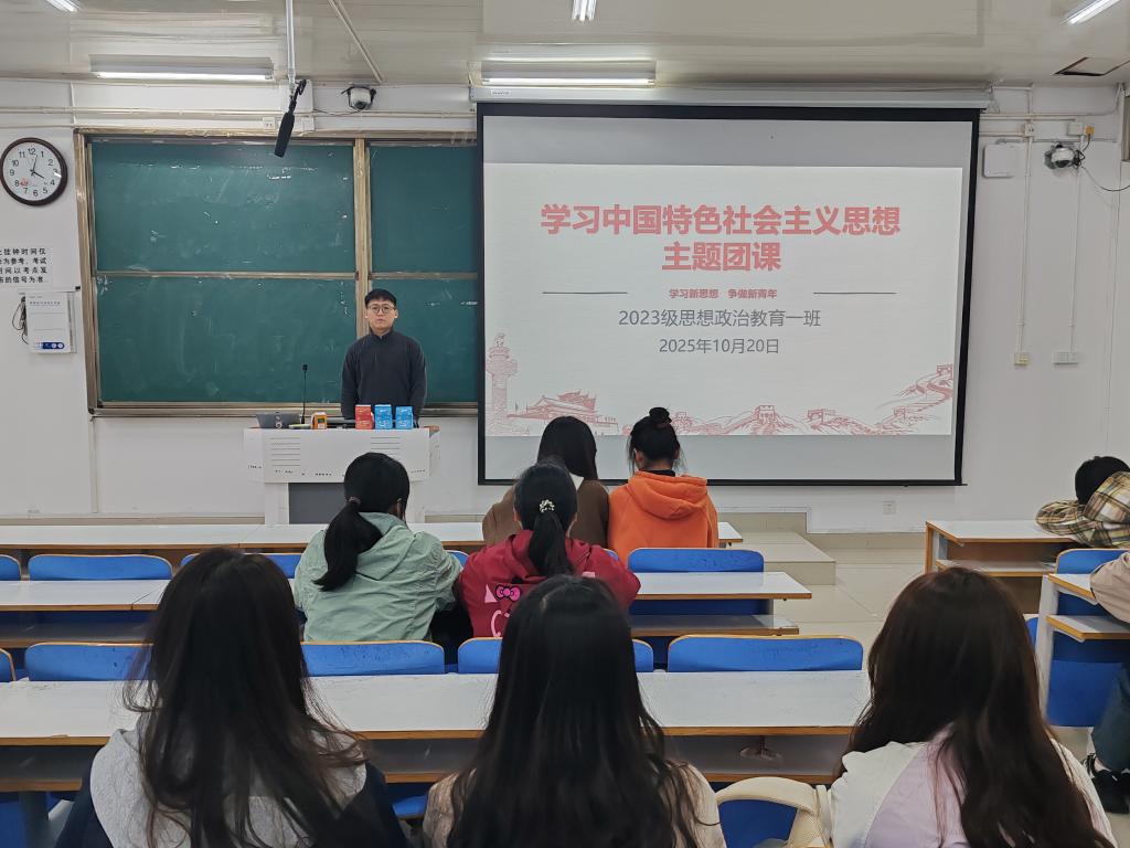 为进一步增强班级同学对党的创新理论的政治认同、思想认同、理论认同和情感认同,提升同学们的理论水平和实践能力,10月20日下午,明升MS88官网2023级思想政治教育一班在社科楼514教室开展了“学习中国特色社会主义思想”主题团课。2023级思想政治教育一班全体同学参与本次团课,团课由团支书张卓主持。